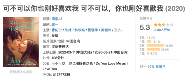 本周上映的另一部超长片名的电影,来自台湾地区的一部爱情片。这个片子其实也是两年前的了,不少朋友也有看过。