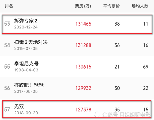 香港警匪港片曾经红极一时,内地票房最高的是《拆弹专家2》,票房成绩为13.14亿,紧随以后的是《扫毒2天地对决》的13.12亿。排在第三名的是《无双》的12.73亿。
