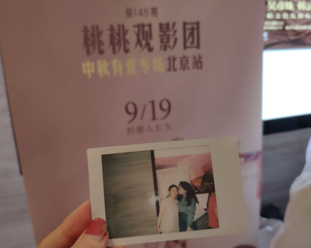 也有朋友带着妈妈一起参加了我们的观影团活动,在电影的“全家福”海报前拍照留念。桃团也用拍立得照片为她们永久框柱这一刻的美好。母女二人共同在影院中感受到了情感的流动。