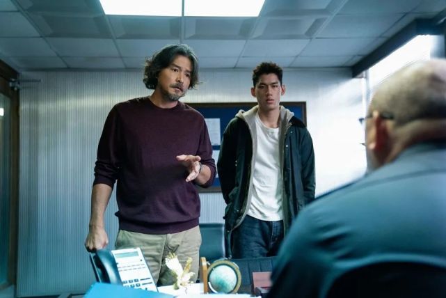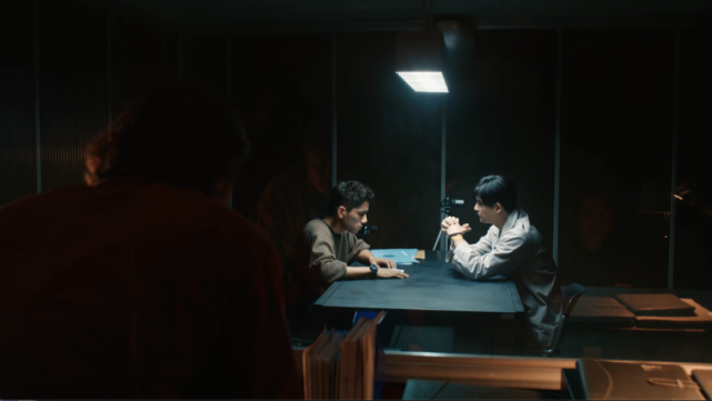 印象特别深刻的一场戏,则是警察们在审讯证人,而梁炎东在看守所里,以视频的方式参与。
