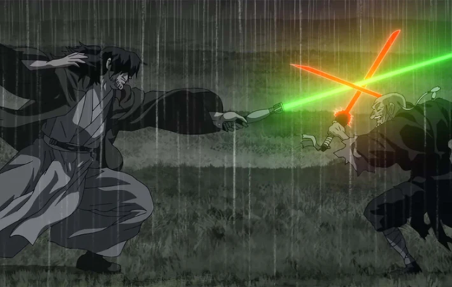 首集开篇即定调,揭开了这个系列对经典日本武士电影的致敬,将星球大战的标志性图像与日本的动画风格完美融合。