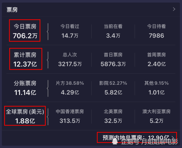 《怒火·重案》累计票房已经达到了12.37亿,全球票房成绩为1.88亿美元。猫眼预测票房有所提升,达到了12.9亿。这部电影密钥二次延期到10月31日。靠着较好的口碑基础,该片依旧可以获得一定的票房收入。