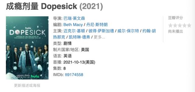 剧情简介来自豆瓣:该剧根据Beth Macy撰写的同名畅销书改编,基顿扮演老派医生塞缪尔·芬尼克斯,他以仁慈和同情心对待自己的工作,但他发现自己陷入了大制药公司致命的秘密之中。
