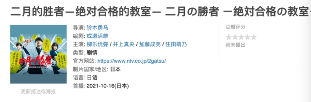 剧情简介转自豆瓣:柳乐优弥主演《二月的胜者 -绝对合格教室-》,改编自高瀬志帆的同名漫画。描述理论派知名中学测验补习班明星讲师・黑木藏人(柳乐优弥),到了一家业绩低迷的中段班补习班担任校长。一上任就告诉刚升上6年级的学生们说「绝对会让所有人考上第一志愿」。称补习班为贩卖孩童未来的场所、学生为金脉、家长是赞助商的他,靠着敏锐的洞察力和行动力看透学生们的本质,同时也解决家长们的不安。