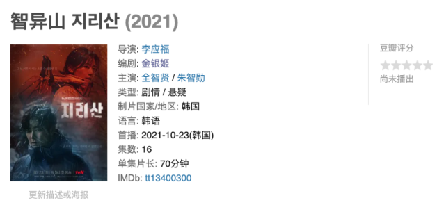 剧情简介转自豆瓣:该剧将以韩国智异山为背景,讲述在大雨、大雪、滑坡、台风天气下,智异山国家公园的护林员救出被困者,并在直升机无法起飞的一天,在5小时内,救出了被困者。全智贤将饰演智异山国家公园最好的护林员。