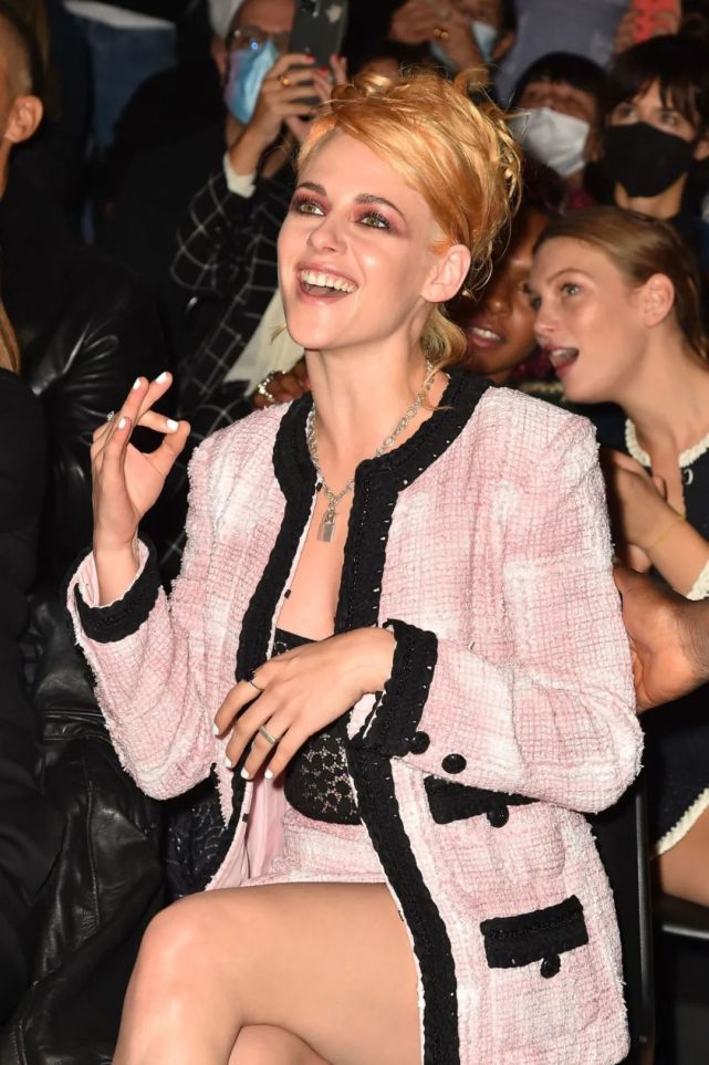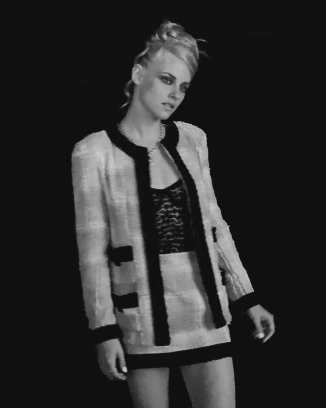 戴安娜王妃传记电影《斯宾塞》宣传期中,主演小K克里斯汀·斯图尔特勤快营业,新近又以金色短发造型登上《娱乐周刊》封面,酷劲不减,美丽依然。内页更有多款性感有力的“霸总”造型,足以让人脑补一出大戏。 巴黎时装周香奈儿看秀造型: 巴黎时装周香奈儿秀场上的小K: