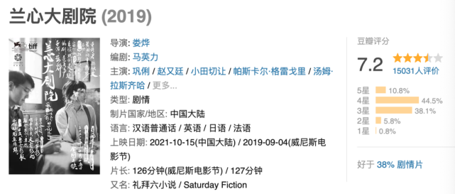 等了这么久,娄烨的这部《兰心大剧院》也终于上了,影片曾入围2019年9月的威尼斯电影节主竞赛单元,如今已经是2021年的10月了,两年之后,影片终于正式上映。