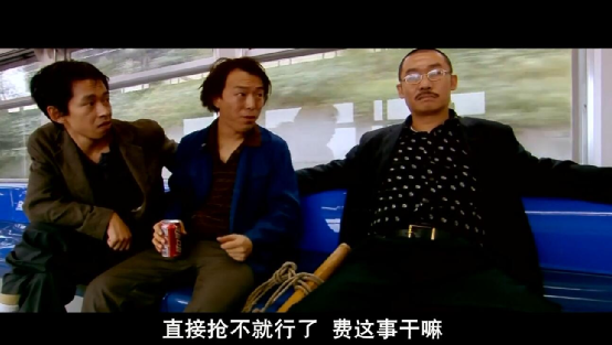 然后,那个特别衰的角色——肥水,其发型致敬了《疯狂的石头》中黄渤饰演的黑皮,这两个角色同样都是被于困狭小空间中。