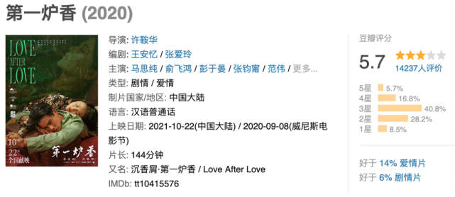 是的,一部想要成为爱情片的《第一炉香》,在爱情本身却没有太多说服力以及记忆瞬间,反倒是几处欲望的描写让人印象深刻。