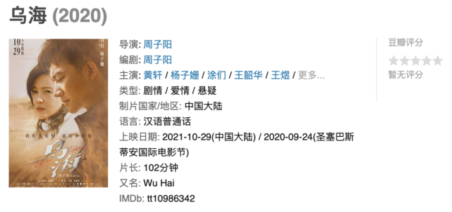 这部《乌海》也终于上映了,也是一年前的片子了。其实去年就曾入围圣塞巴斯蒂安电影节,还拿到了费比西奖。之后也曾亮相金鸡影展、海南国际电影节等多个节展。