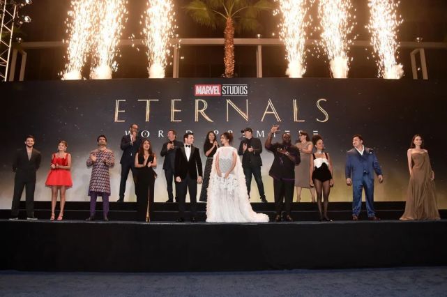 《永恒族》主创们:陈静、朱莉、理查德·麦登、 基特·哈灵顿、马东锡、导演赵婷、漫威大佬凯文·费吉等。