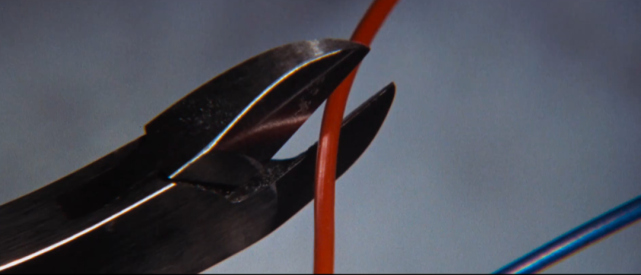 在动作戏里,一场爆炸戏的结尾,永远都是简单粗暴的“剪红线还是蓝线”。并且那个人总要拖到最后0.1秒钟才下刀。