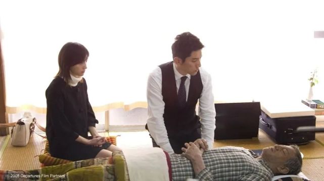 《入殓师》的动人,不在于一次次死亡的悲痛,而是在死亡缝隙中恣意流淌的生之喜乐。