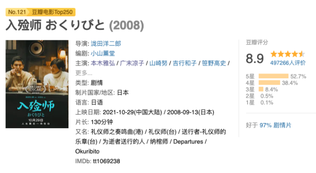 虽说一千个观众有一千个哈姆雷特,但是随着时间的发酵,无论哪一代观众都会被《入殓师》浓郁的情感和生死哲思击中。