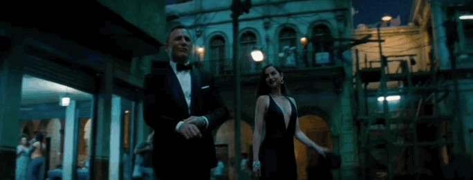 在最新的一部007系列《007 :无暇赴死》中,丹尼尔·克雷格饰演的007与接应人汇合,这位美丽的古巴邦女郎第一件事就是拿出一套全新的西装给邦德换上。
