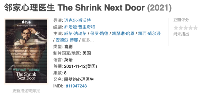 也是Apple TV+的新剧,这个阵容也挺有趣的,威尔·法瑞尔加上保罗·路德,《大病》导演执导。
