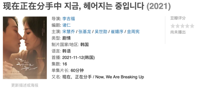 宋慧乔主演的新剧,估计还是有不少朋友想看吧,张基龙共同出演。