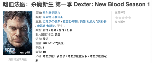 想当年,嗜血法医也是非常有人气的热门美剧了,也有不少忠实粉丝。这次的重启版是10集限定剧,仍由迈克尔·C·豪尔主演。