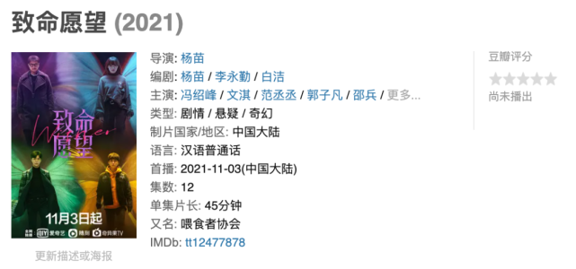 迷雾剧场继续,这次是《致命愿望》,该剧已经定在了11月3日开播,估计不少人也等了很久了吧。