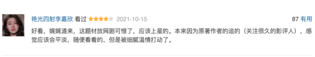 在短评里,最常见的内容就是“好看”“温情”“遗憾”“可惜”。
