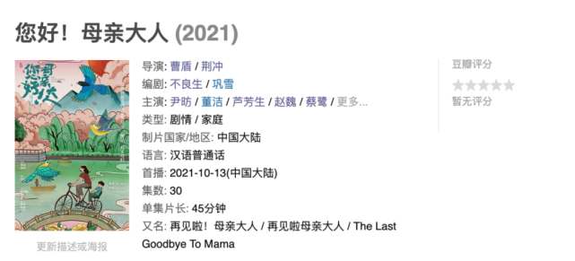 这段令人意难平的爱情故事,来自于由曹盾、荆冲导演,尹昉、董洁、芦芳生主演的《您好!母亲大人》。