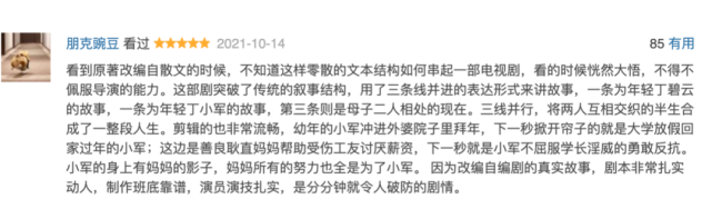连制片人都亲自下场,24小时回复豆瓣和微博评论,和网友们一起追剧、讨论剧情。也能从中感受到,主创对这个故事有多么走心。