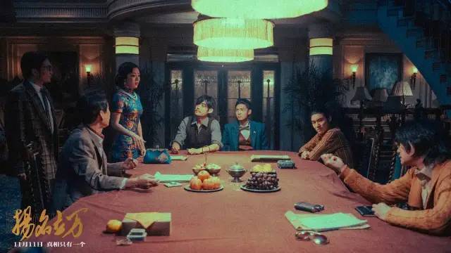 一开始,由一宗凶杀案引入,剧本杀的框架之下,几位民国电影人粉墨登场。很快制造了一个推理探案的封闭空间,密室、本格推理、悬念与反转层层递进。
