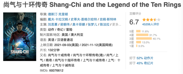 看你们想要从影片获得什么吧,如果一位超级漫威粉,想继续感受漫威爆米花的快乐,这部影片倒也勉强够用,而且最后也重新串联起尚气与漫威的关系,这就可以接着拍了。