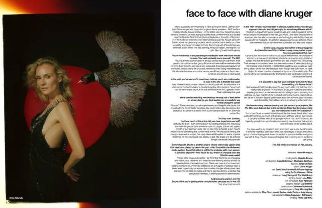 作为演员,黛安有不少作品值得期待:讲述现代女性生存困境的剧集《H24》(10月底已在法国播出);阵容强大但命运多舛、已定档明年初上映的女性题材动作大片《355》;