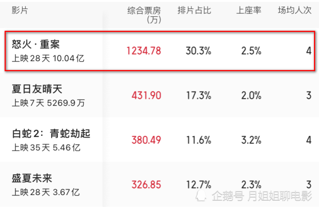 因为《怒火·重案》的上座率确实已经有了明显的下降,如果接下来上座率持续走低的话,排片量也就会出现大幅度下降,从而也就会影响到日票房收入。
