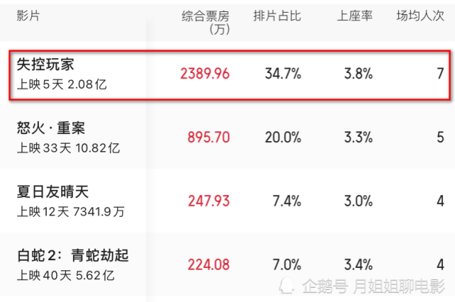 《失控玩家》累计票房突破了2亿。这部科幻喜剧片的口碑不错,豆瓣打出了7.8分。影片由肖恩·利维执导,“小贱贱”瑞安·雷诺兹主演,给观众带来了想看的内容。