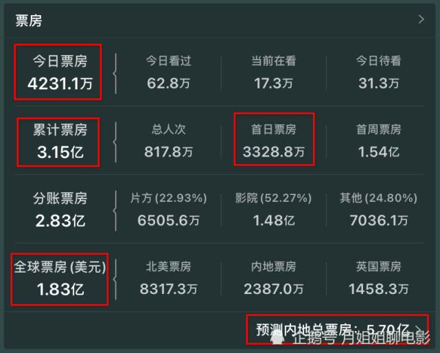 该片在全球票房成绩已经达到了1.83亿美元,口碑和票房双丰收。这部电影在内地上映的首日票房仅为3300多万。能够如此火爆,靠的是影片的质量,带给了观众想看的内容。