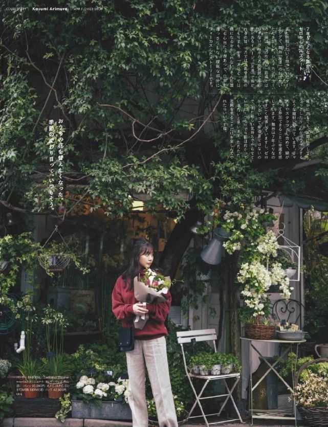 有村架纯为《mina》杂志新刊拍摄的封面写真曝光,“村花”化身温柔可人的眼镜娘,在满溢着草叶清新与花朵馨香的花店中认真打理花束,氛围如诗歌般美好。 2021年接连奉献出《花束般的恋爱》、《短剧开始啦》、《浪客剑心 最终章 追忆篇》等佳作,就连记录个人生活的真人秀都获得一片好评,“村花”银幕上下都有着润物细无声的独特魅力。 《花束般的恋爱》 《短剧开始啦》 《浪客剑心 最终章 追忆篇》 真人秀《富美和架纯的休息日》中的真·村花造型 更多杂志美图欣赏: