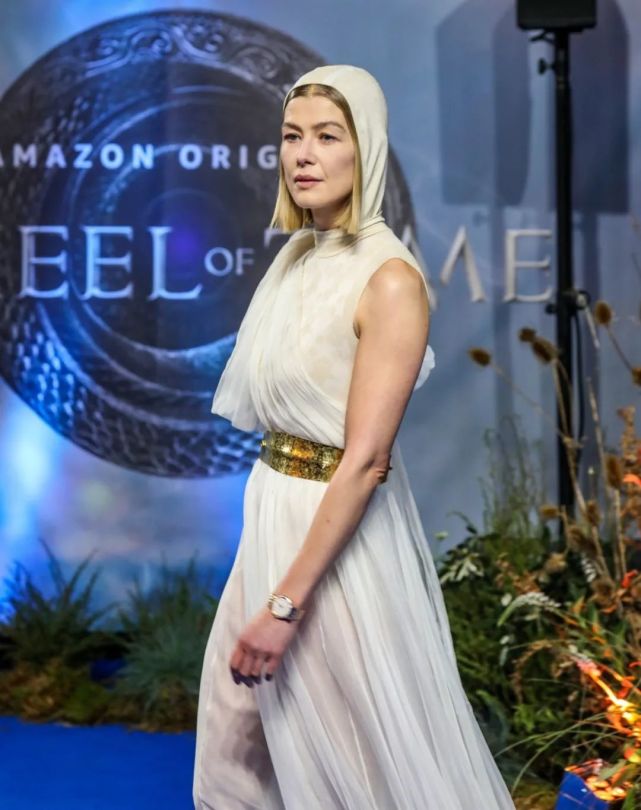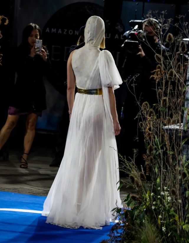 《时光之轮》伦敦首映礼组图,非常特别的连帽礼服:
