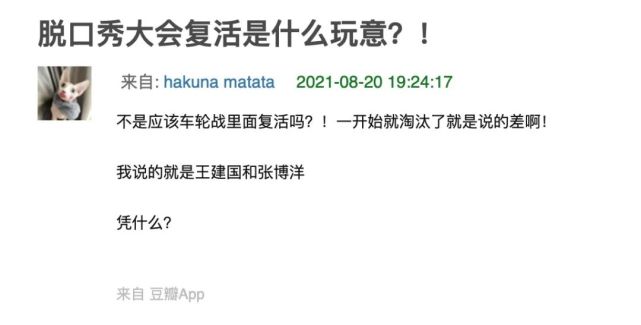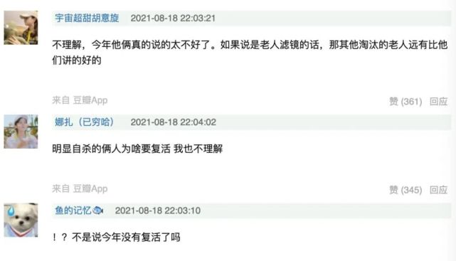 王建国和张博洋的复活无论出于什么目的,也基本都算是达到了目的。大家对他二人复活的讨论热度之高,甚至超过了节目本身。 很难说该喜该忧。