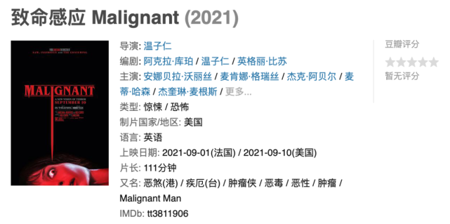 《致命感应》的英文名叫Malignant,如果看过全片,会发现,其实这个片名还是对剧情有很多暗示的。