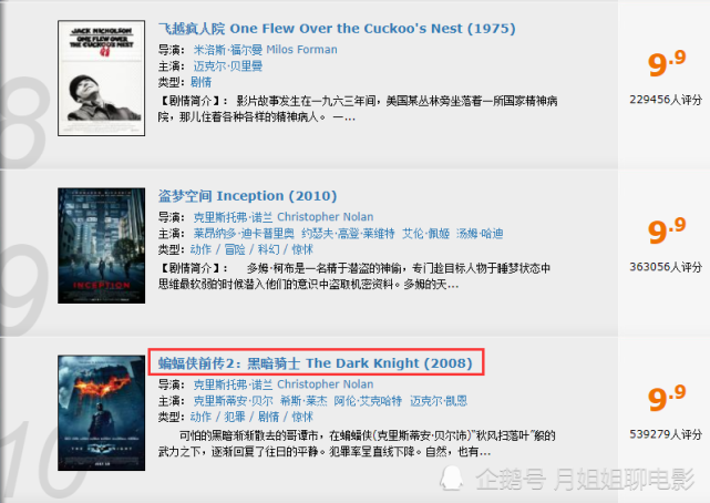 IMDB250排行榜的第十名是《蝙蝠侠前传2:黑暗骑士》,该系列电影都是良心制作的作品,虽然无法堪称完美,但绝对属于最优秀的系列电影之一。