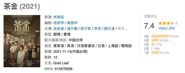 最近有两部台剧都很热门,一部是开始评分非常高,之后却出现了诡异的评分走向,也就是如今豆瓣7.4分的《茶金》。