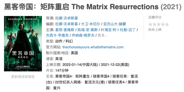 而《黑客帝国:矩阵重启》则移到了明年1月中旬上映。