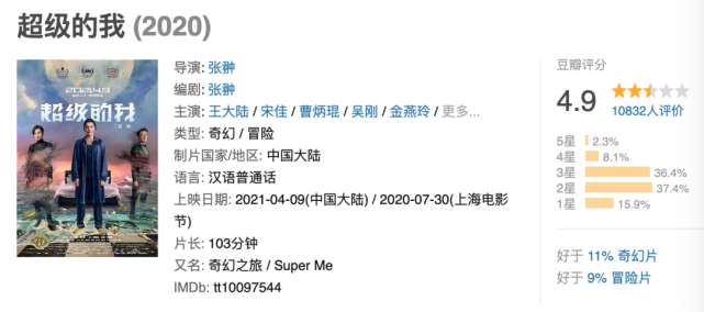 另外呢,本片导演之一张翀还执导过另一部电影,那就是王大陆主演的《超级的我》。