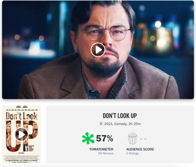 而卡司闪瞎眼的《不要抬头》就更惨烈了,烂番茄新鲜度只有59%,mtc均分53。